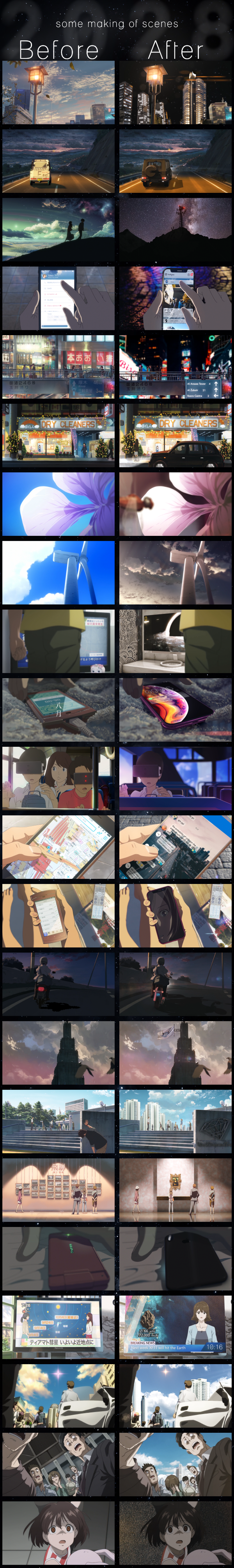 Anime: Your name, Psycho pass, Flavours of youth, The gardien of the words, 5 cm per second, Wolf children, The place promised in our early days, Cross road, Violet evergarden, A silent voice, Napping princess, Hyouka, When the promised flower blooms, Harmony, Inuyashiki, Terror in resonance, A fairy tale of the two, Weathering with you, One punch man, Made space brothers, Original animation