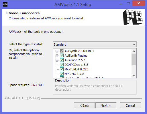 Известный клипмейкер l33tmeatwad из США, подготовил отличную сборку полезных программ для клипмейкеров. AMVpack - это общий инсталлятор для программ, которые часто используются для подготовки и обработки футажей для АМВ-мейкинга. Инсталлятор имеет, в том числе, и русский интерфейс.